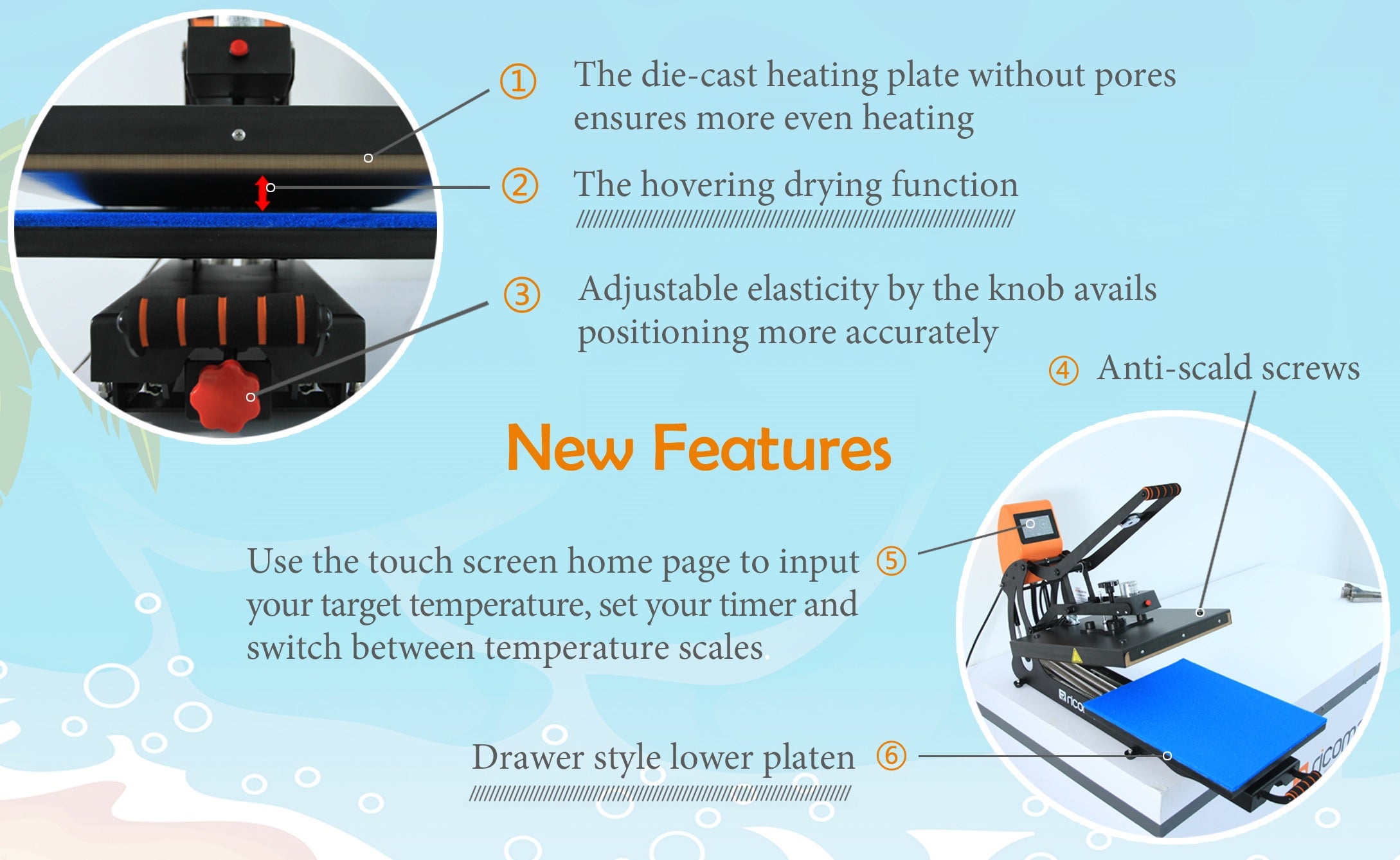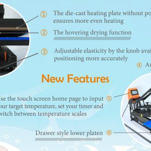 It also has programable timers for different pressing options such as pre-trreat timing or ink curing timings