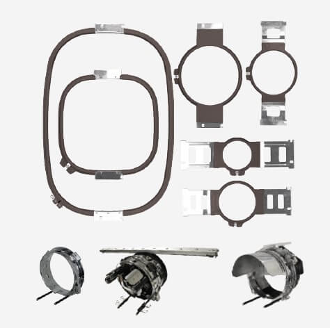 n*Zawarte tamborki/ramki: 2 x 90 mm, 2 x 120 mm, 2 x 150 mm, 2 x 190 mm, 2 x 290 x 290 mm, 2 x 540 x 360 mm, 1 x czapka Sterownik, 1 x stacja do nawlekania czapek i 2 x pierścienie do nawlekania czapek